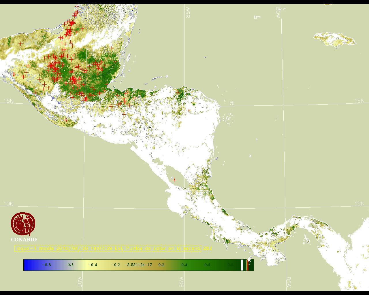 Se considera como punto de calor al elemento espacial mínimo de la imagen (pixel) que reporta una temperatura elevada. Para las imágenes diurnas la temperatura mínima considera es de 42C y para las imágenes nocturnas es de 25C. |