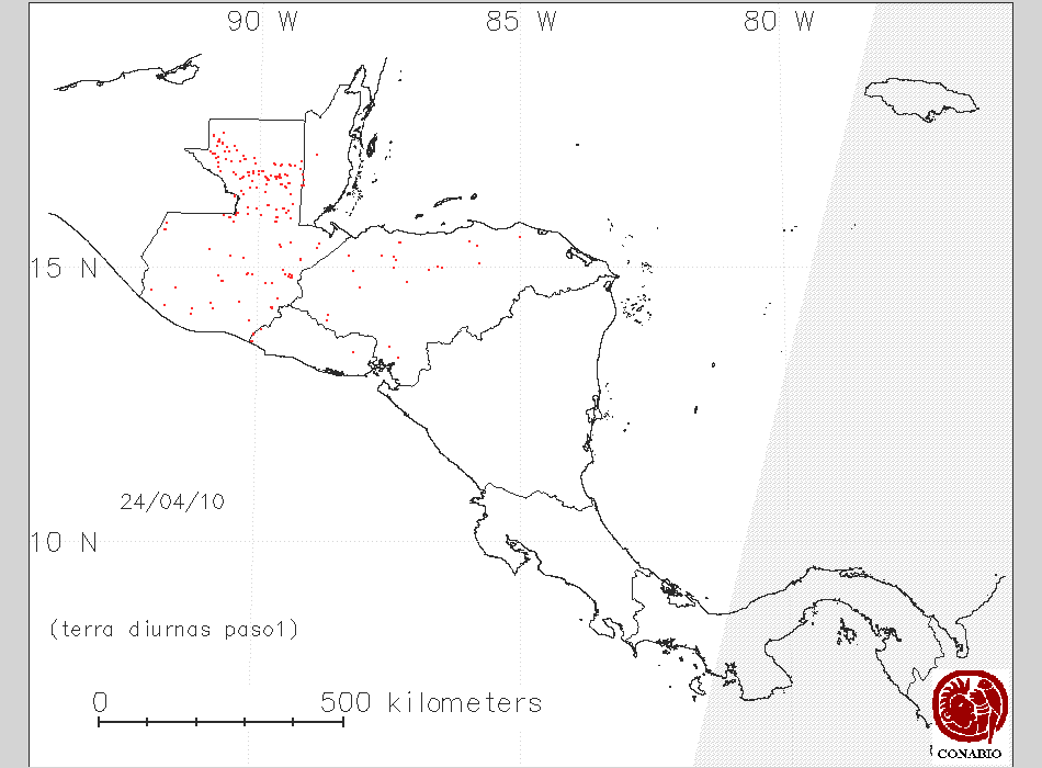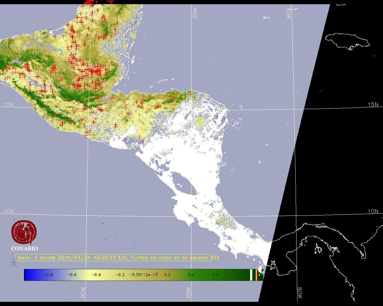 Se considera como punto de calor al elemento espacial mínimo de la imagen (pixel) que reporta una temperatura elevada. Para las imágenes diurnas la temperatura mínima considera es de 42C y para las imágenes nocturnas es de 25C. |