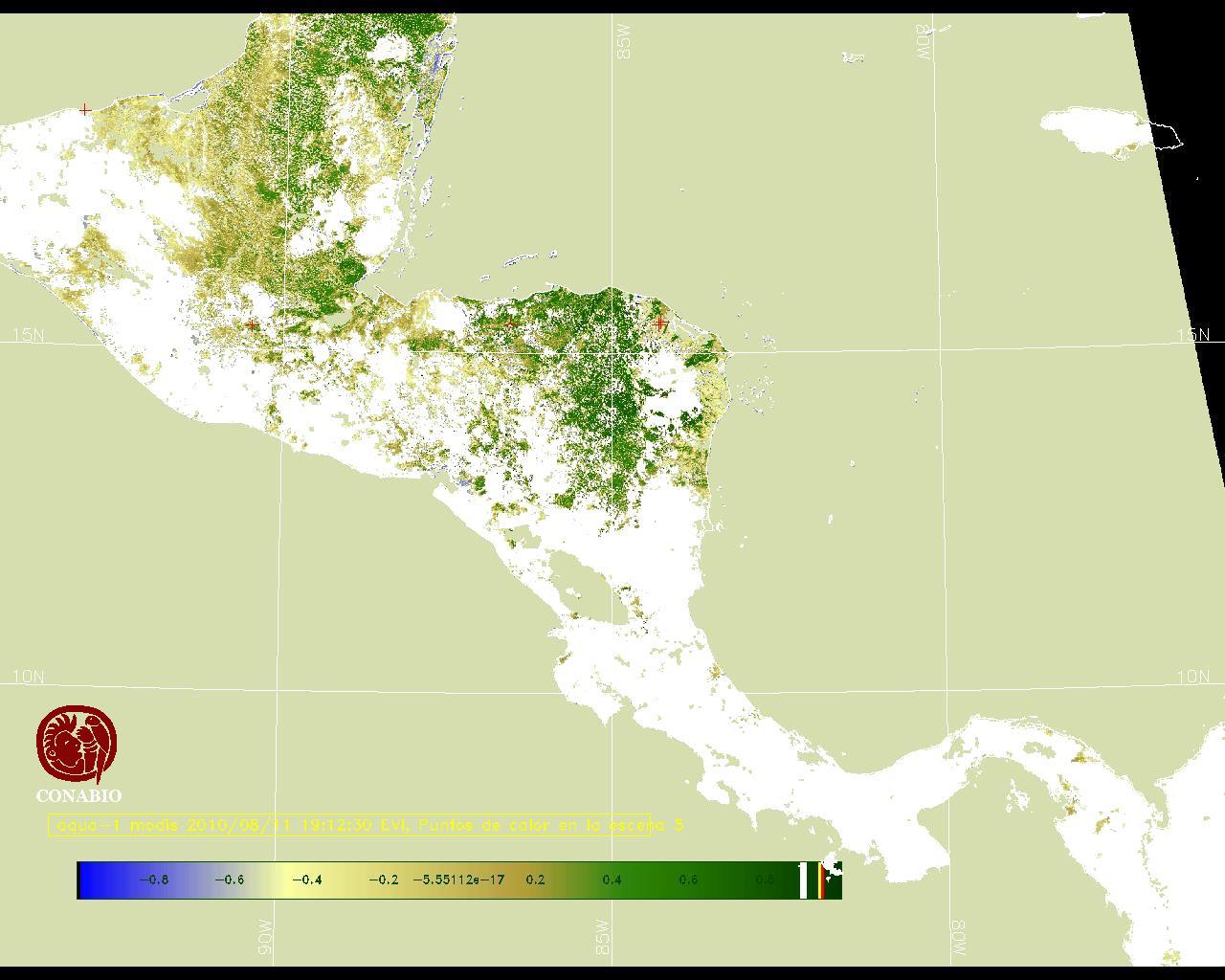 Los valores del índice van de -1 a 1, entre más cercano al valor 1 la vegetación presenta mayor vigor. Los índices de vegetación son utilizados para conocer el comportamiento de la vegetación tanto espacial como temporal. |