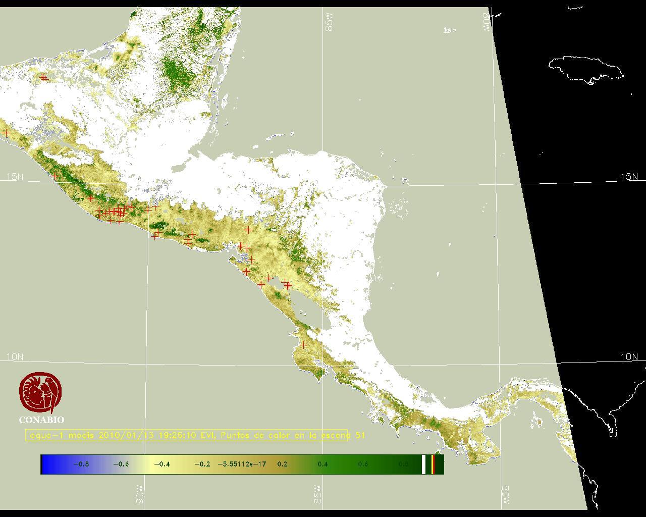 Se considera como punto de calor al elemento espacial mínimo de la imagen (pixel) que reporta una temperatura elevada. Para las imágenes diurnas la temperatura mínima considera es de 42C y para las imágenes nocturnas es de 25C. |