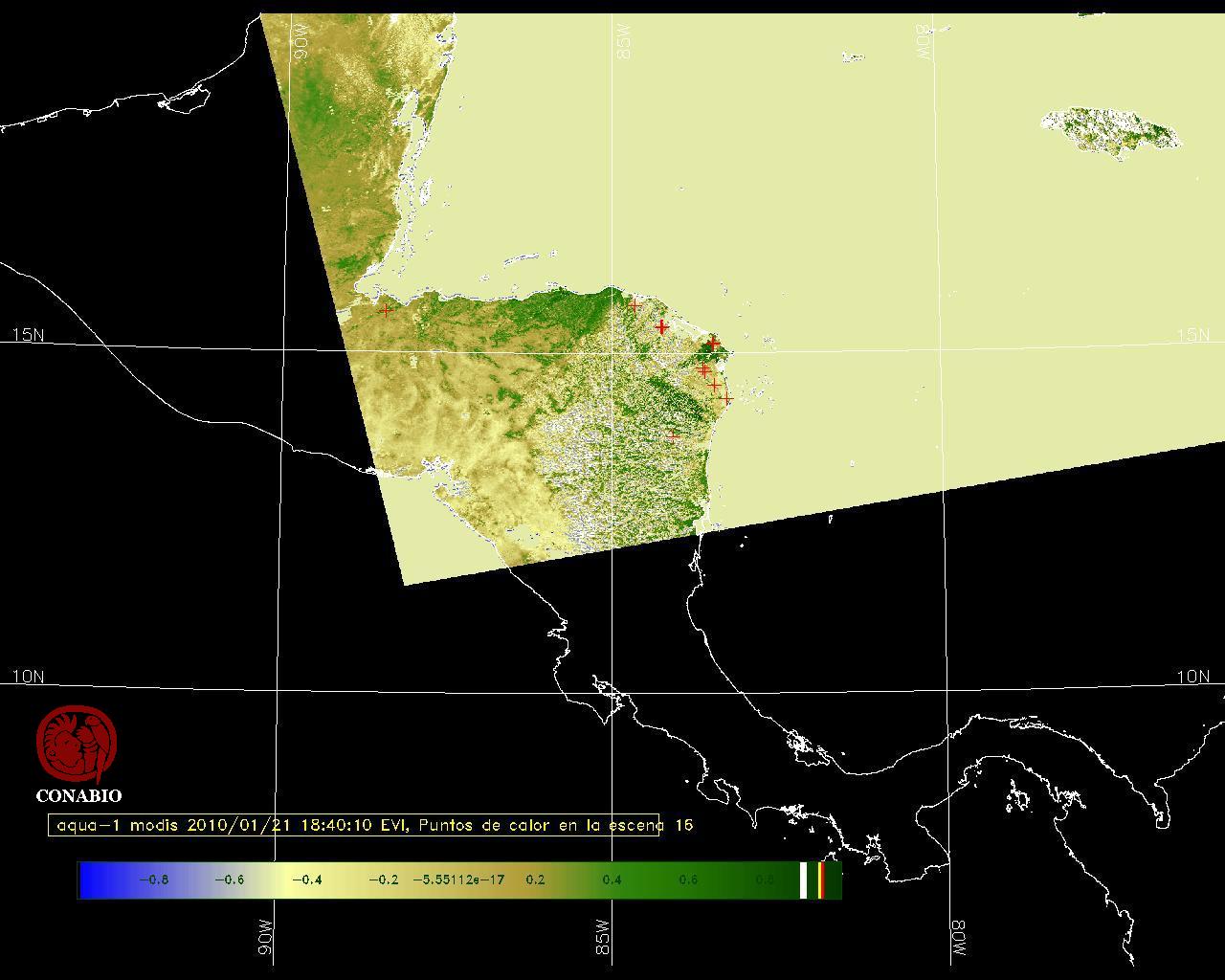Se considera como punto de calor al elemento espacial mínimo de la imagen (pixel) que reporta una temperatura elevada. Para las imágenes diurnas la temperatura mínima considera es de 42C y para las imágenes nocturnas es de 25C. |