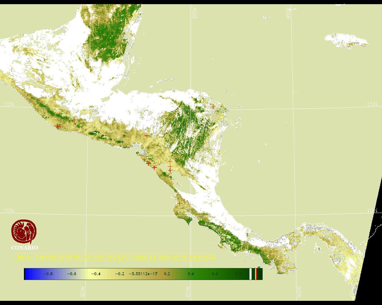 Se considera como punto de calor al elemento espacial mínimo de la imagen (pixel) que reporta una temperatura elevada. Para las imágenes diurnas la temperatura mínima considera es de 42C y para las imágenes nocturnas es de 25C. |