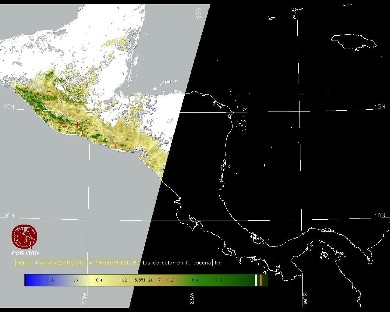 Se considera como punto de calor al elemento espacial mínimo de la imagen (pixel) que reporta una temperatura elevada. Para las imágenes diurnas la temperatura mínima considera es de 42C y para las imágenes nocturnas es de 25C. |