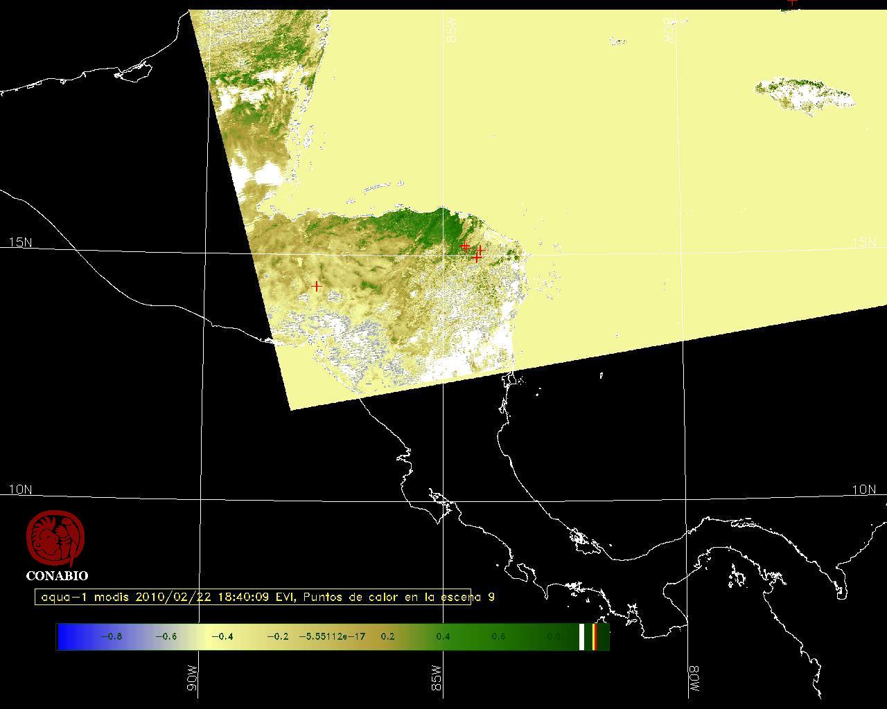 Se considera como punto de calor al elemento espacial mínimo de la imagen (pixel) que reporta una temperatura elevada. Para las imágenes diurnas la temperatura mínima considera es de 42C y para las imágenes nocturnas es de 25C. |