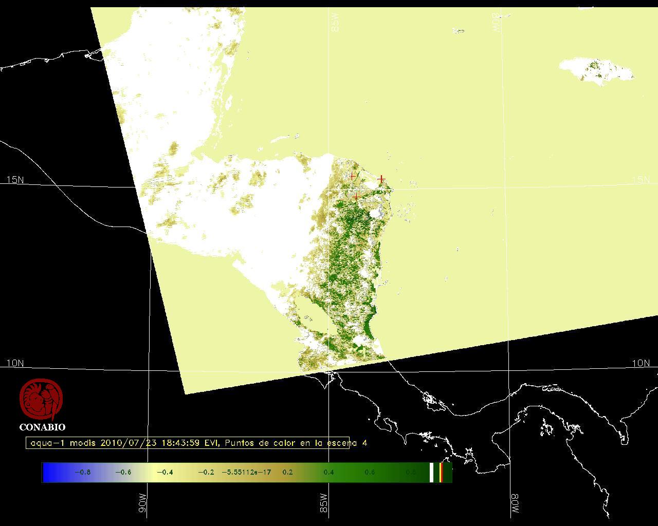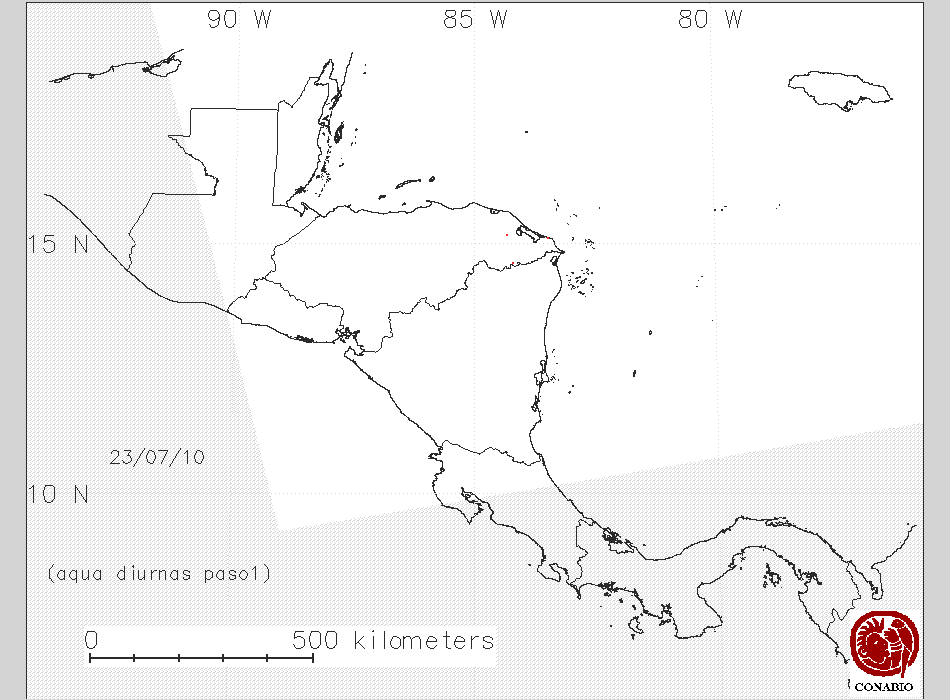 Se considera como punto de calor al elemento espacial mínimo de la imagen (pixel) que reporta una temperatura elevada. Para las imágenes diurnas la temperatura mínima considera es de 42C y para las imágenes nocturnas es de 25C. |