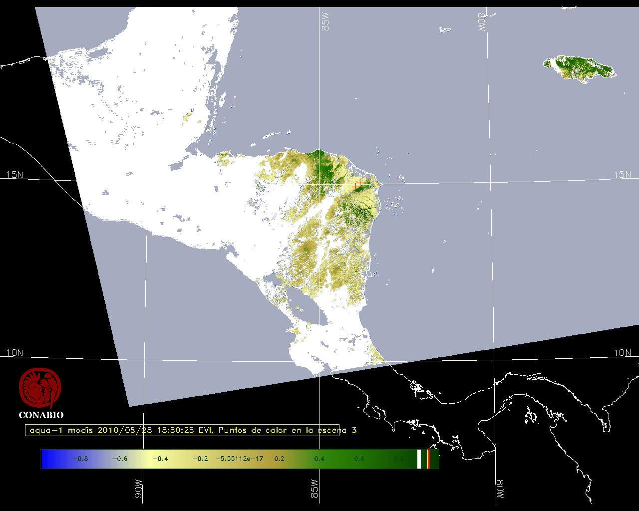 Se considera como punto de calor al elemento espacial mínimo de la imagen (pixel) que reporta una temperatura elevada. Para las imágenes diurnas la temperatura mínima considera es de 42C y para las imágenes nocturnas es de 25C. |