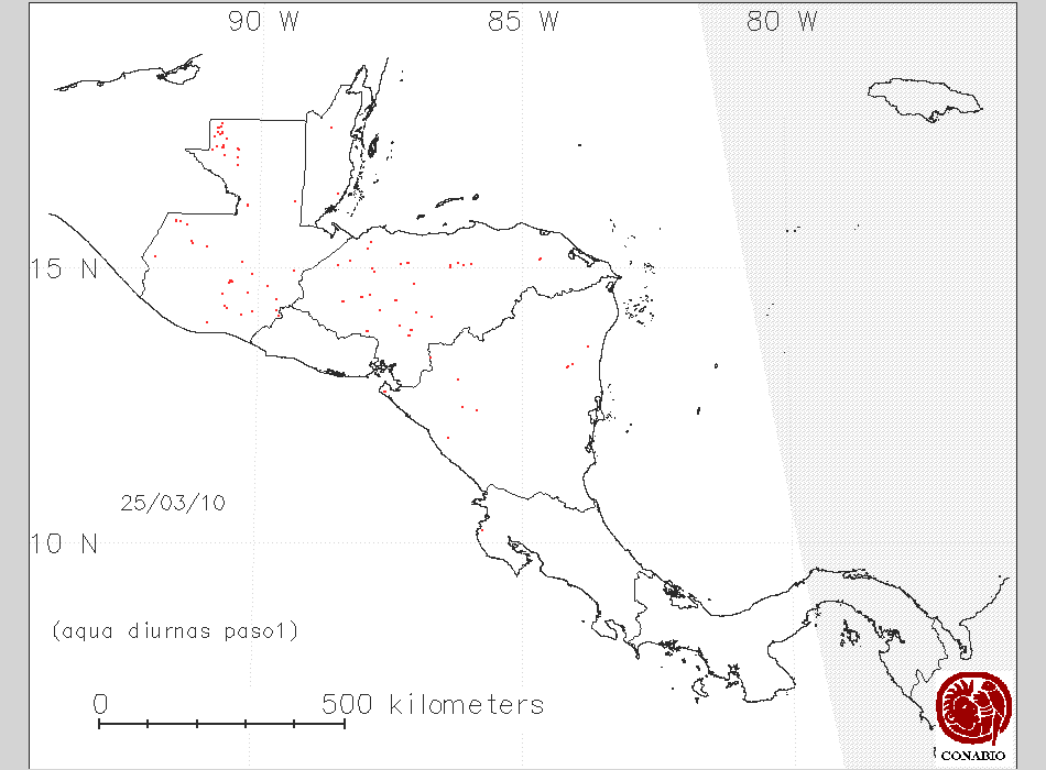 Se considera como punto de calor al elemento espacial mínimo de la imagen (pixel) que reporta una temperatura elevada. Para las imágenes diurnas la temperatura mínima considera es de 42C y para las imágenes nocturnas es de 25C. |