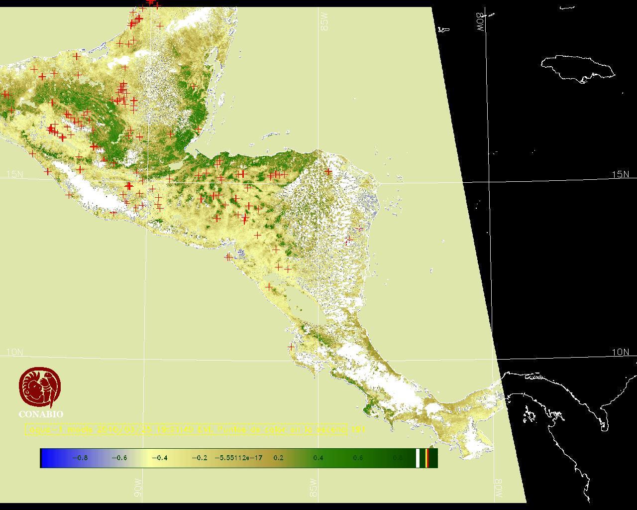 Los valores del índice van de -1 a 1, entre más cercano al valor 1 la vegetación presenta mayor vigor. Los índices de vegetación son utilizados para conocer el comportamiento de la vegetación tanto espacial como temporal. |