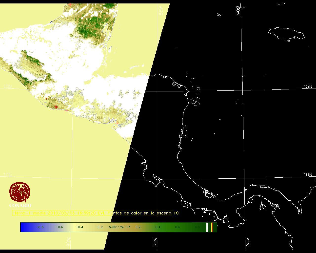 Se considera como punto de calor al elemento espacial mínimo de la imagen (pixel) que reporta una temperatura elevada. Para las imágenes diurnas la temperatura mínima considera es de 42C y para las imágenes nocturnas es de 25C. |