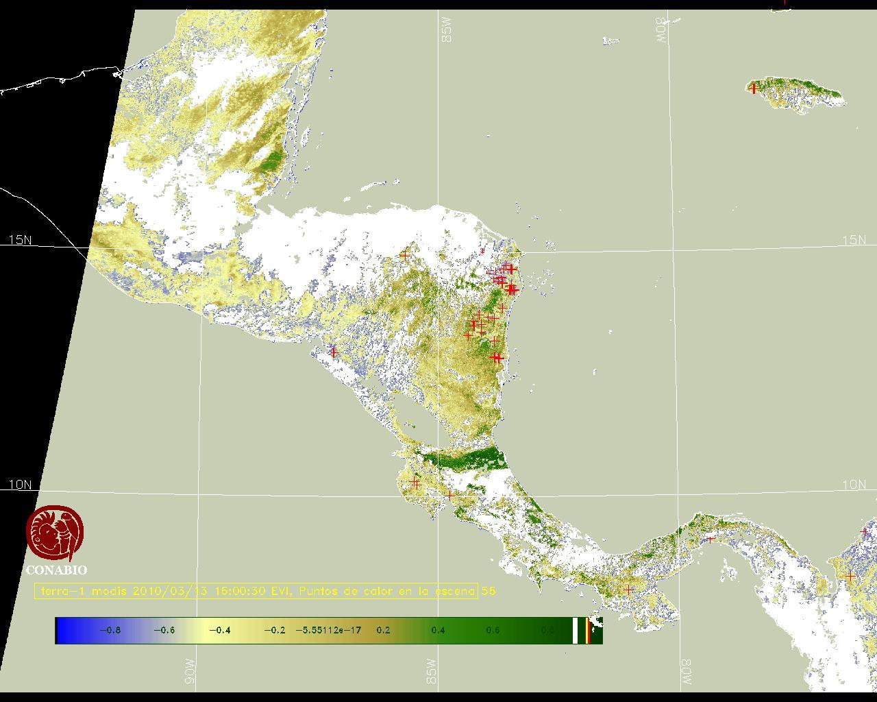 Se considera como punto de calor al elemento espacial mínimo de la imagen (pixel) que reporta una temperatura elevada. Para las imágenes diurnas la temperatura mínima considera es de 42C y para las imágenes nocturnas es de 25C. |