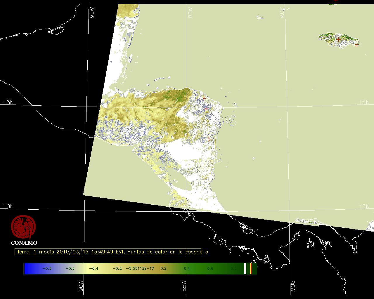Se considera como punto de calor al elemento espacial mínimo de la imagen (pixel) que reporta una temperatura elevada. Para las imágenes diurnas la temperatura mínima considera es de 42C y para las imágenes nocturnas es de 25C. |