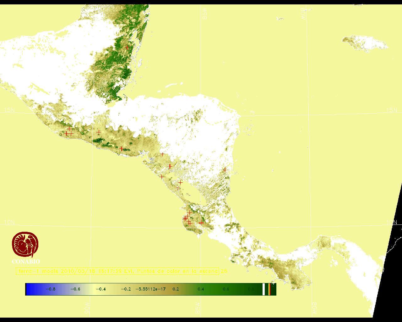 Se considera como punto de calor al elemento espacial mínimo de la imagen (pixel) que reporta una temperatura elevada. Para las imágenes diurnas la temperatura mínima considera es de 42C y para las imágenes nocturnas es de 25C. |
