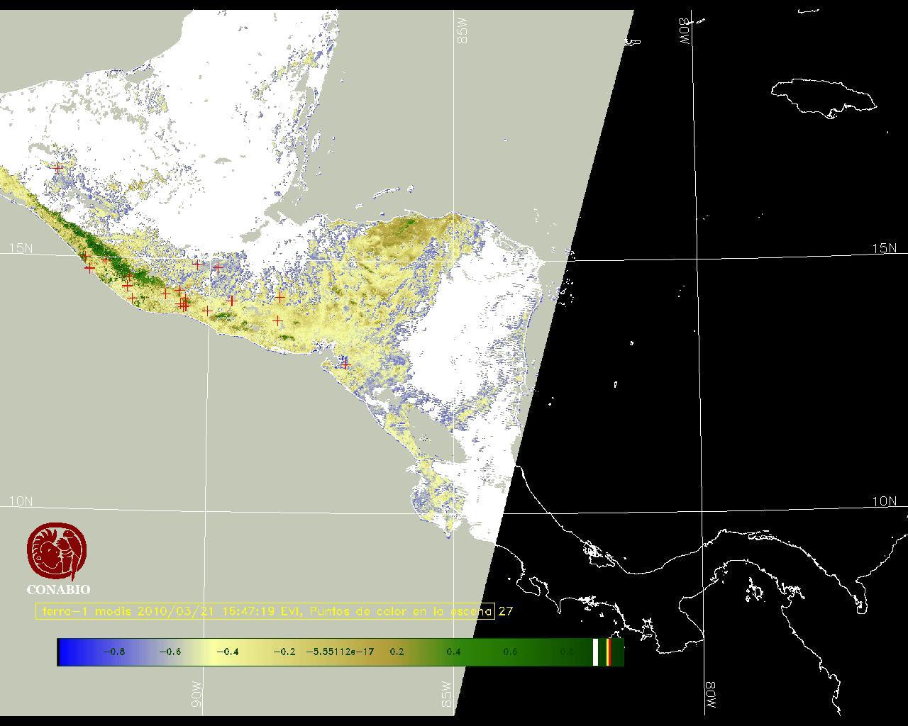 Se considera como punto de calor al elemento espacial mínimo de la imagen (pixel) que reporta una temperatura elevada. Para las imágenes diurnas la temperatura mínima considera es de 42C y para las imágenes nocturnas es de 25C. |