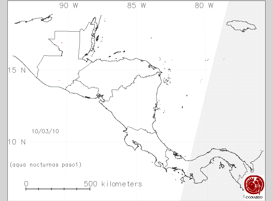 Se considera como punto de calor al elemento espacial mínimo de la imagen (pixel) que reporta una temperatura elevada. Para las imágenes diurnas la temperatura mínima considera es de 42C y para las imágenes nocturnas es de 25C. |