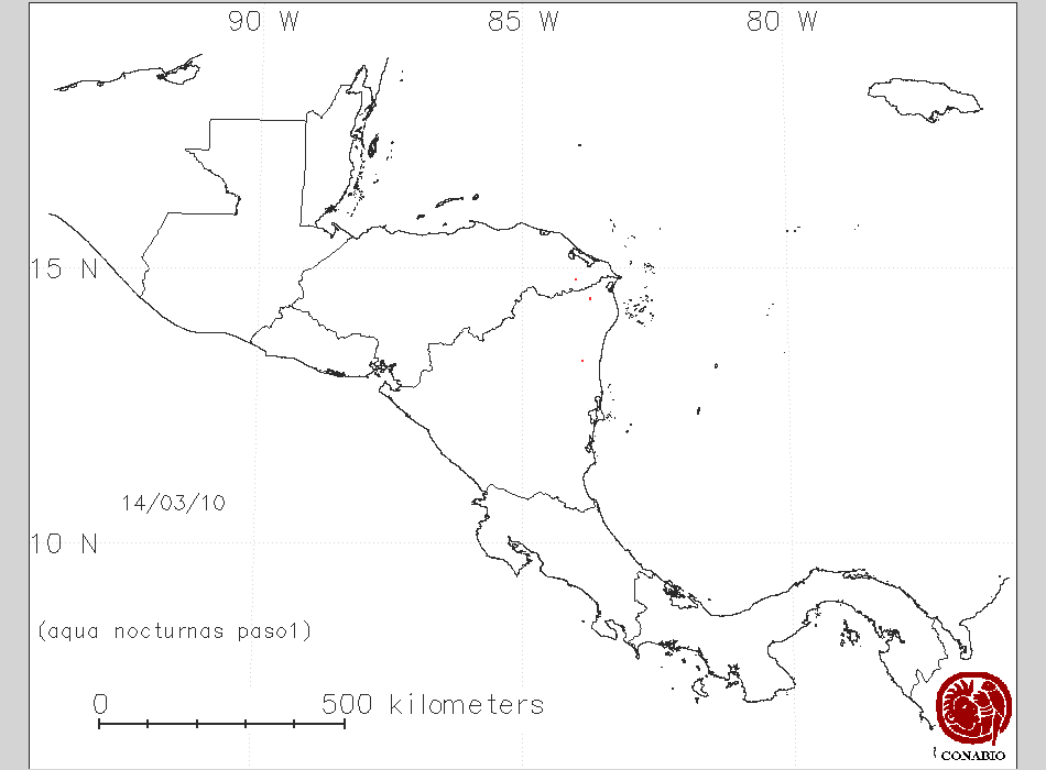 Se considera como punto de calor al elemento espacial mínimo de la imagen (pixel) que reporta una temperatura elevada. Para las imágenes diurnas la temperatura mínima considera es de 42C y para las imágenes nocturnas es de 25C. |