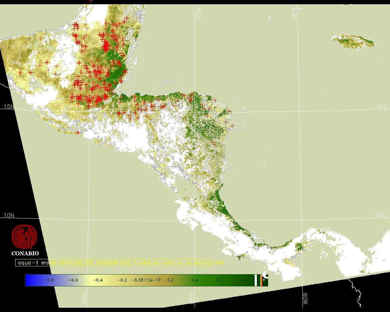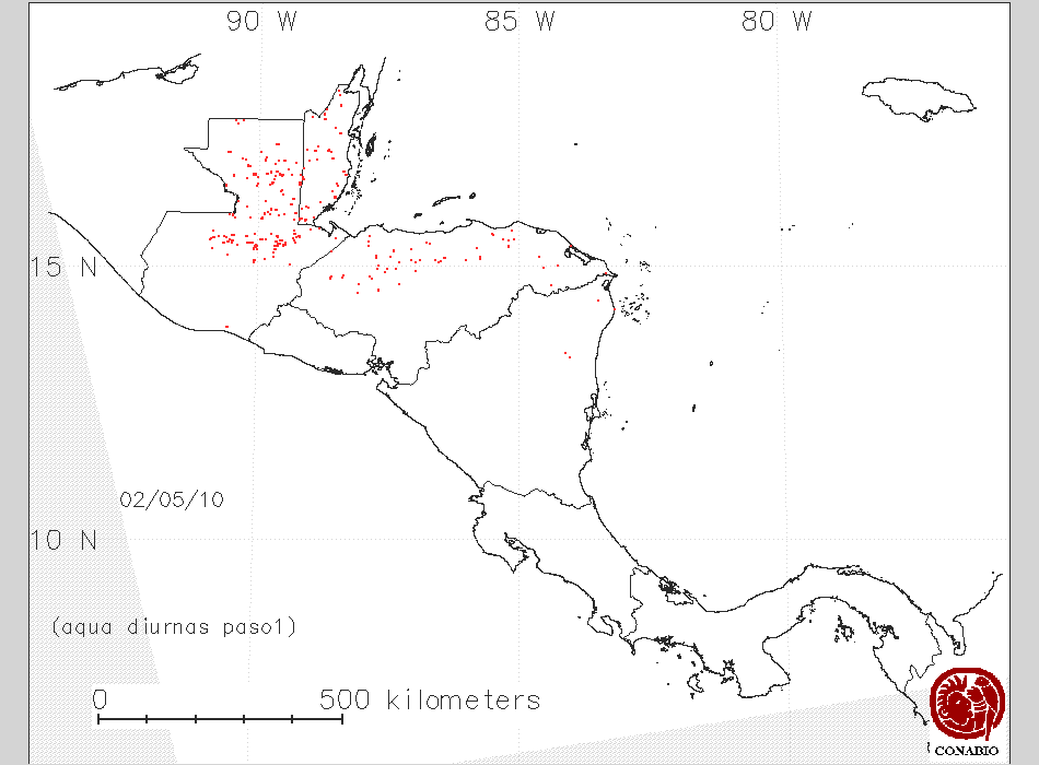 Se considera como punto de calor al elemento espacial mínimo de la imagen (pixel) que reporta una temperatura elevada. Para las imágenes diurnas la temperatura mínima considera es de 42C y para las imágenes nocturnas es de 25C. |
