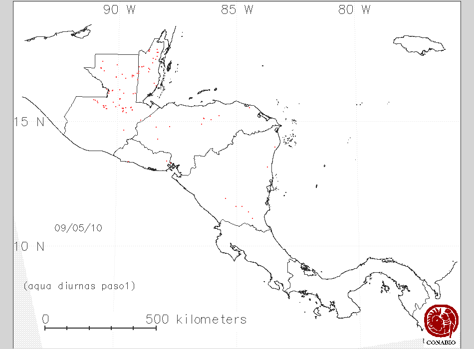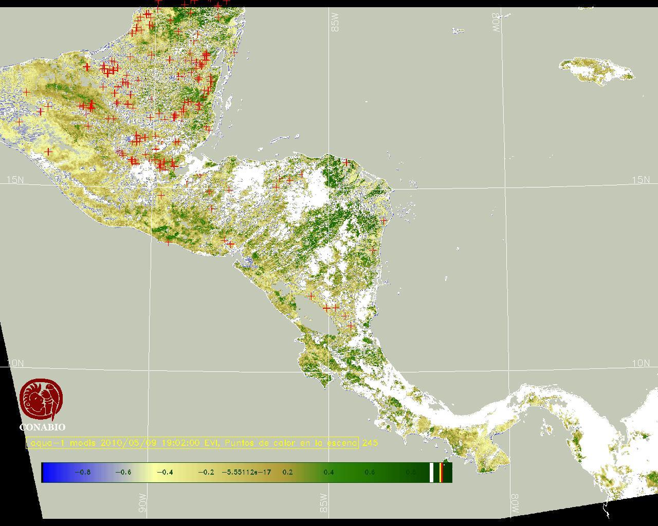 Se considera como punto de calor al elemento espacial mínimo de la imagen (pixel) que reporta una temperatura elevada. Para las imágenes diurnas la temperatura mínima considera es de 42C y para las imágenes nocturnas es de 25C. |