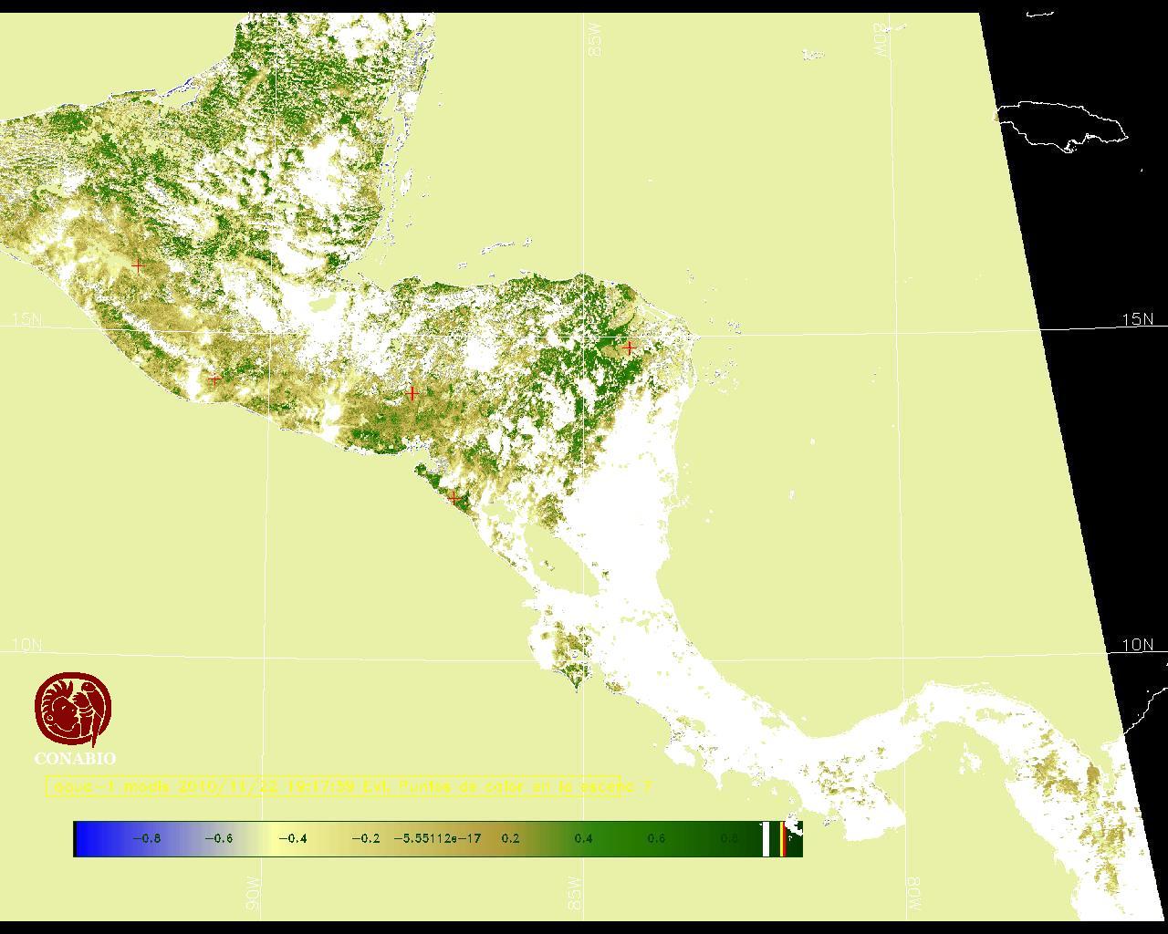 Se considera como punto de calor al elemento espacial mínimo de la imagen (pixel) que reporta una temperatura elevada. Para las imágenes diurnas la temperatura mínima considera es de 42C y para las imágenes nocturnas es de 25C. |