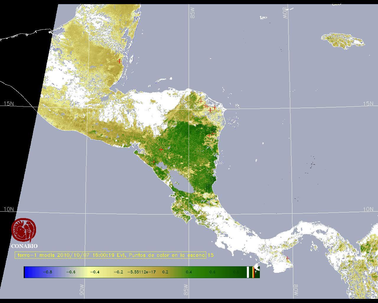 Se considera como punto de calor al elemento espacial mínimo de la imagen (pixel) que reporta una temperatura elevada. Para las imágenes diurnas la temperatura mínima considera es de 42C y para las imágenes nocturnas es de 25C. |