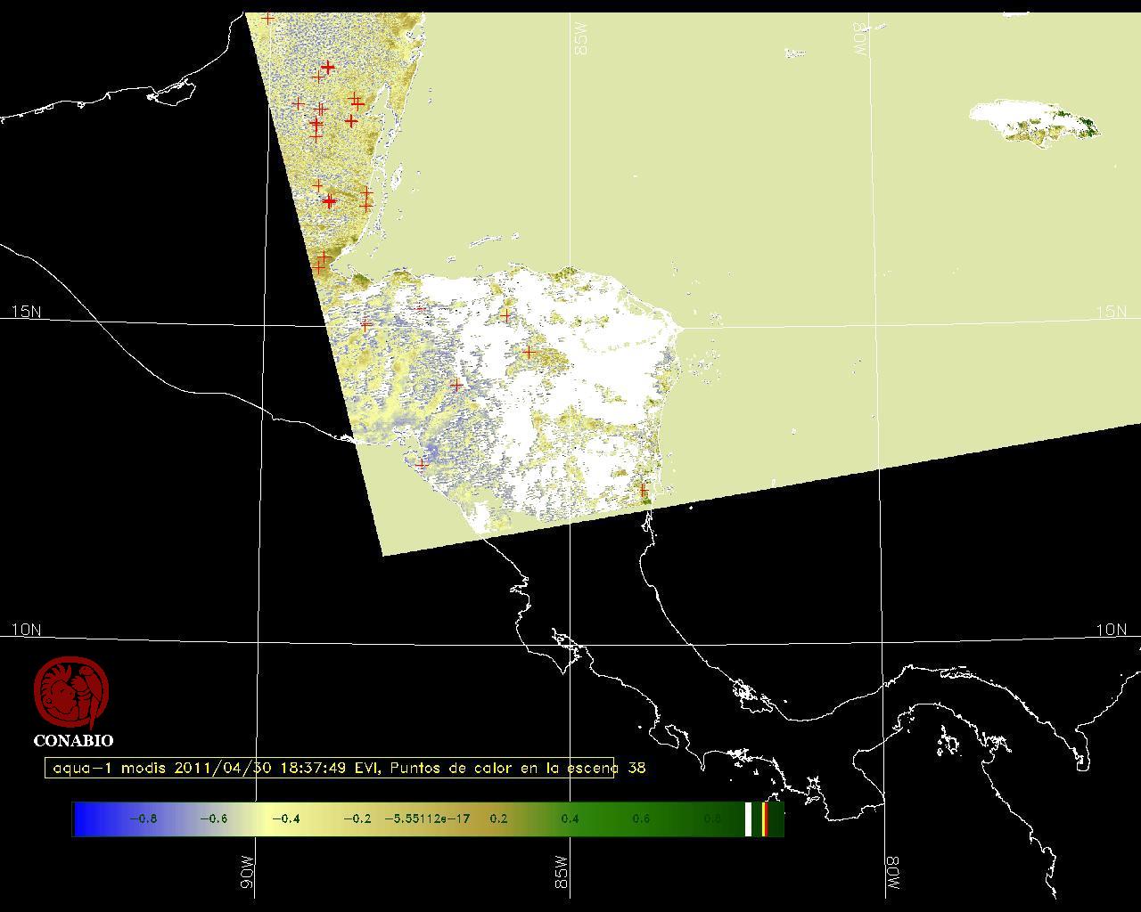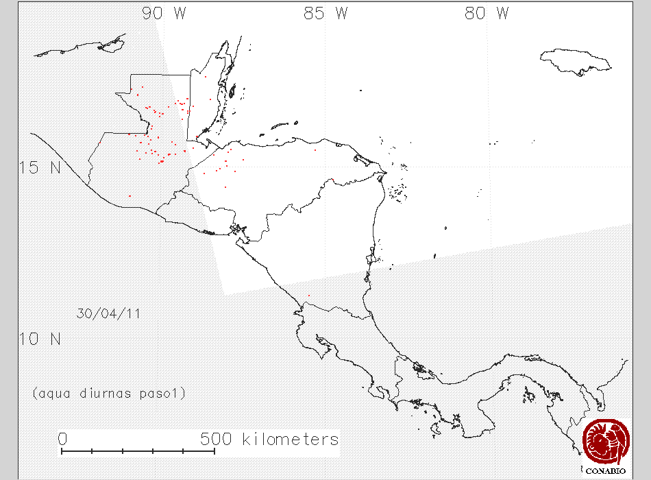 Se considera como punto de calor al elemento espacial mínimo de la imagen (pixel) que reporta una temperatura elevada. Para las imágenes diurnas la temperatura mínima considera es de 42C y para las imágenes nocturnas es de 25C. |
