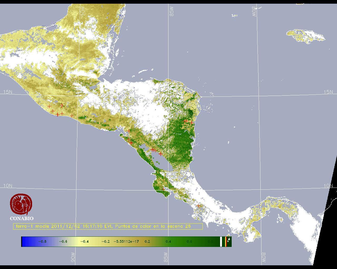 Se considera como punto de calor al elemento espacial mínimo de la imagen (pixel) que reporta una temperatura elevada. Para las imágenes diurnas la temperatura mínima considera es de 42C y para las imágenes nocturnas es de 25C. |