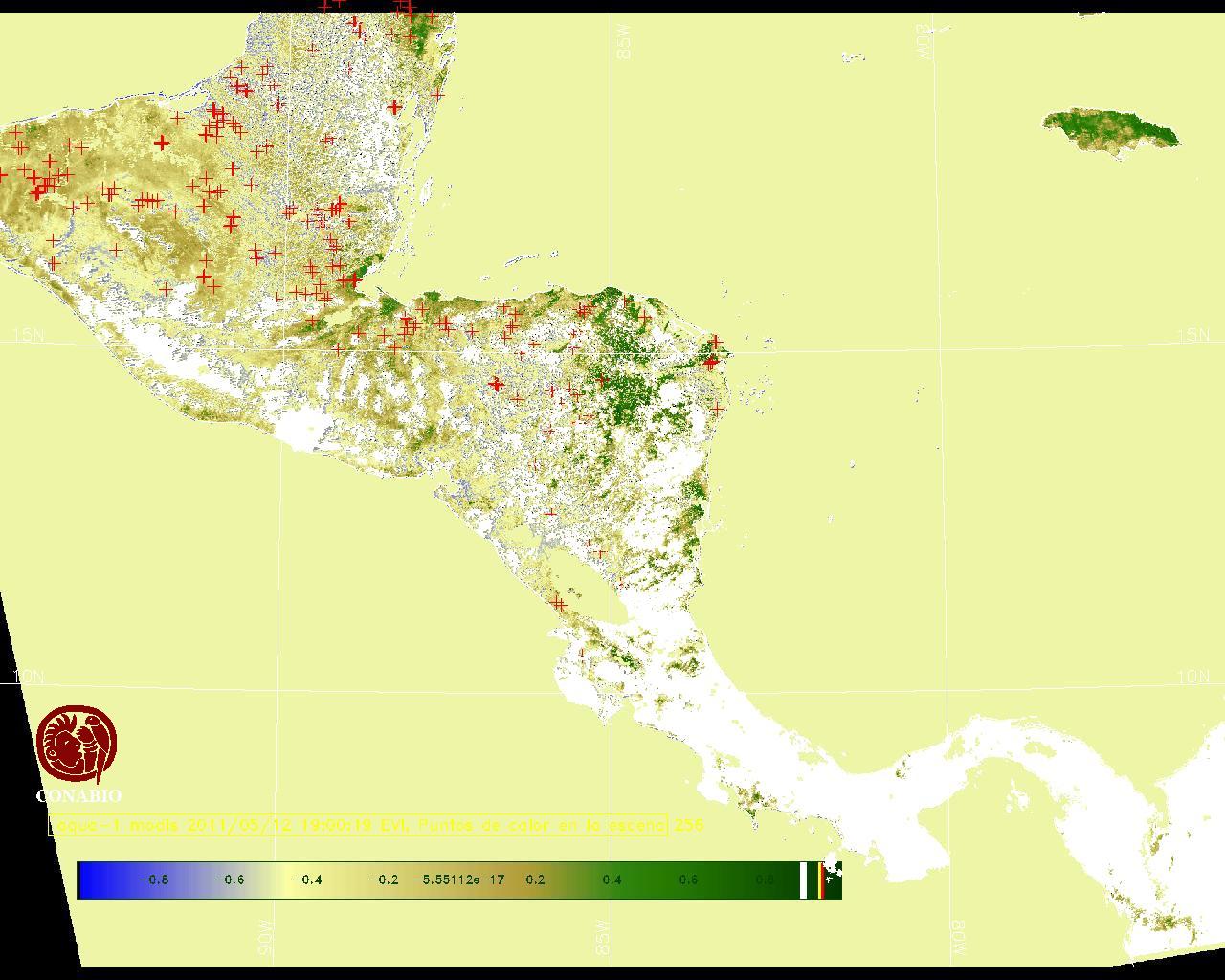 Se considera como punto de calor al elemento espacial mínimo de la imagen (pixel) que reporta una temperatura elevada. Para las imágenes diurnas la temperatura mínima considera es de 42C y para las imágenes nocturnas es de 25C. |
