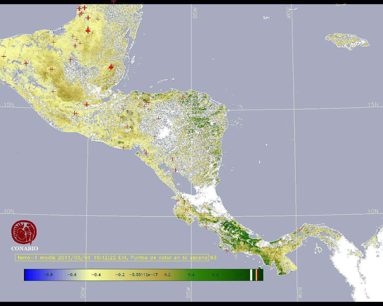 Se considera como punto de calor al elemento espacial mínimo de la imagen (pixel) que reporta una temperatura elevada. Para las imágenes diurnas la temperatura mínima considera es de 42C y para las imágenes nocturnas es de 25C. |