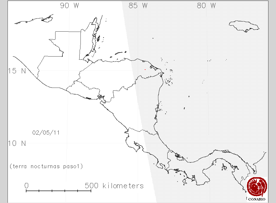 Se considera como punto de calor al elemento espacial mínimo de la imagen (pixel) que reporta una temperatura elevada. Para las imágenes diurnas la temperatura mínima considera es de 42C y para las imágenes nocturnas es de 25C. |