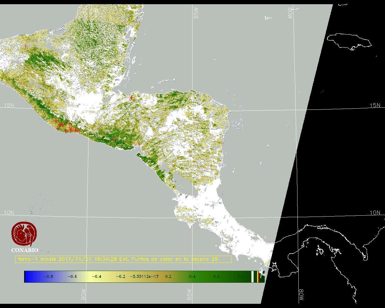Se considera como punto de calor al elemento espacial mínimo de la imagen (pixel) que reporta una temperatura elevada. Para las imágenes diurnas la temperatura mínima considera es de 42C y para las imágenes nocturnas es de 25C. |