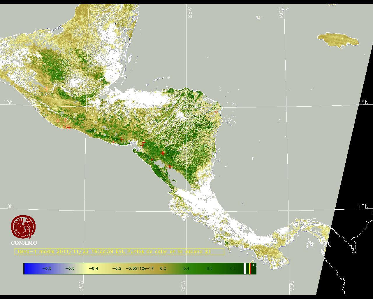 Se considera como punto de calor al elemento espacial mínimo de la imagen (pixel) que reporta una temperatura elevada. Para las imágenes diurnas la temperatura mínima considera es de 42C y para las imágenes nocturnas es de 25C. |