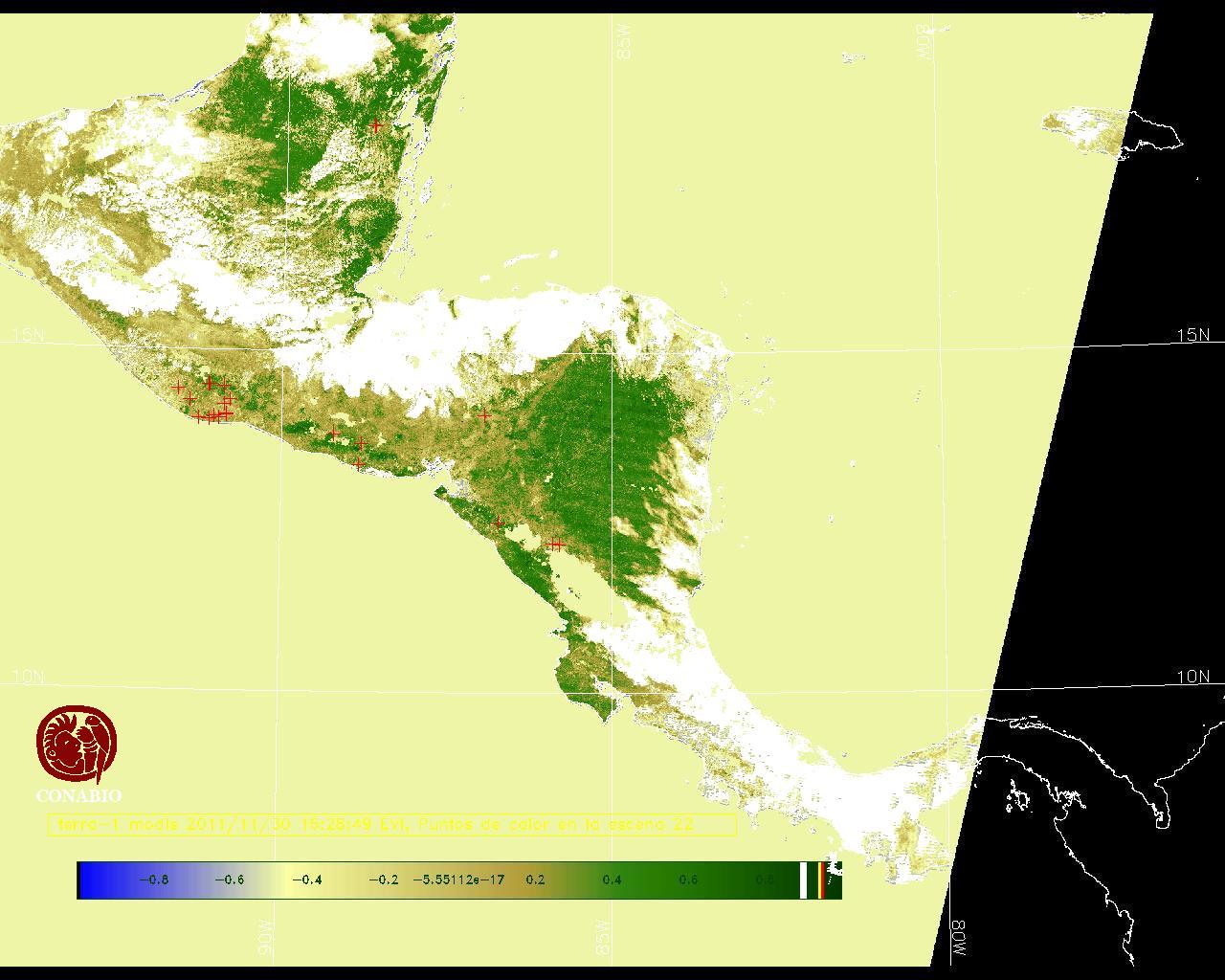 Se considera como punto de calor al elemento espacial mínimo de la imagen (pixel) que reporta una temperatura elevada. Para las imágenes diurnas la temperatura mínima considera es de 42C y para las imágenes nocturnas es de 25C. |