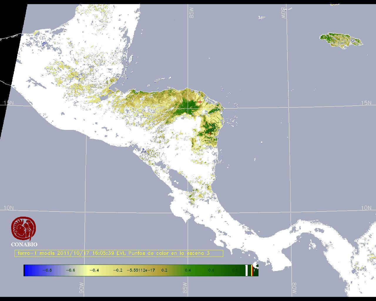 Se considera como punto de calor al elemento espacial mínimo de la imagen (pixel) que reporta una temperatura elevada. Para las imágenes diurnas la temperatura mínima considera es de 42C y para las imágenes nocturnas es de 25C. |