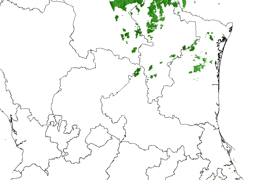 | Indice | Total de pixeles | Longitud | Latitud | Tipo de Vegetación | Municipio / Departamento |