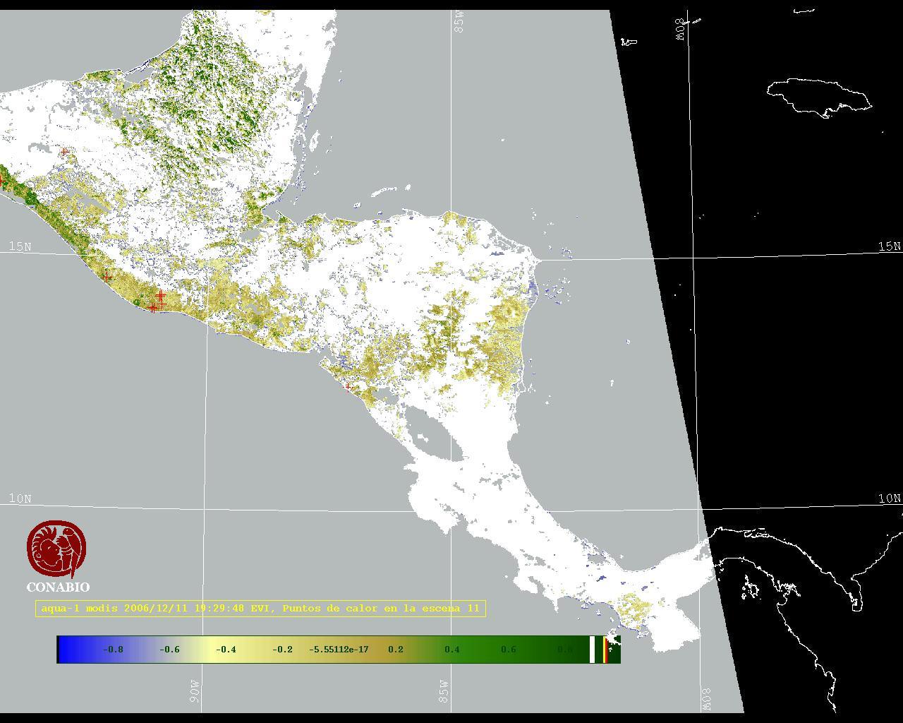 Se considera como punto de calor al elemento espacial mínimo de la imagen (pixel) que reporta una temperatura elevada. Para las imágenes diurnas la temperatura mínima considera es de 42C y para las imágenes nocturnas es de 25C. |