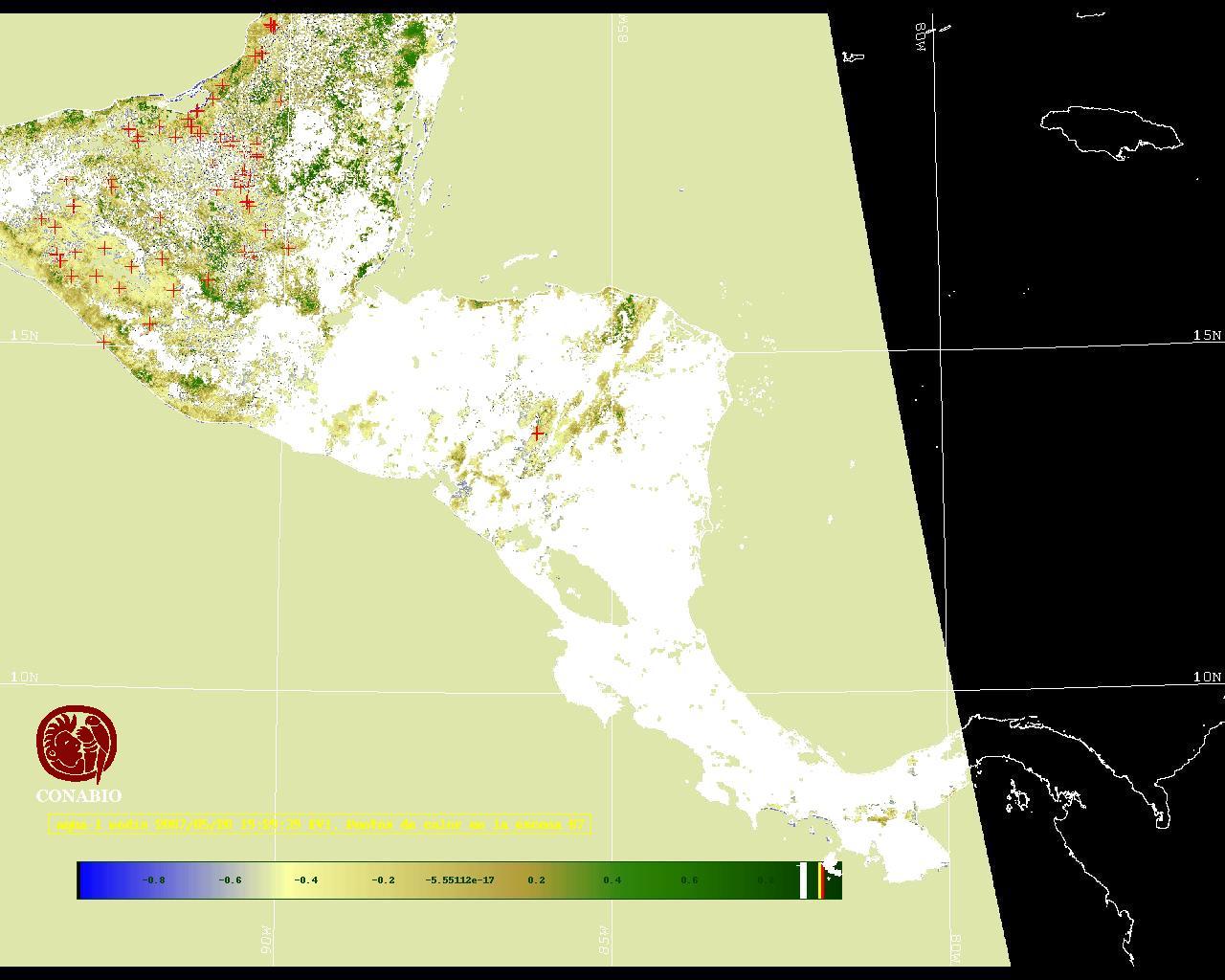 Se considera como punto de calor al elemento espacial mínimo de la imagen (pixel) que reporta una temperatura elevada. Para las imágenes diurnas la temperatura mínima considera es de 42C y para las imágenes nocturnas es de 25C. |