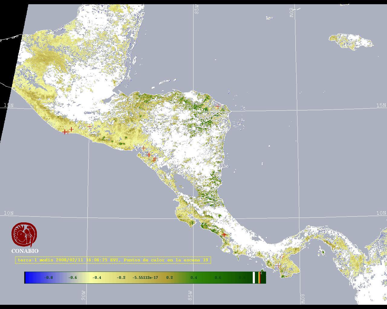 Se considera como punto de calor al elemento espacial mínimo de la imagen (pixel) que reporta una temperatura elevada. Para las imágenes diurnas la temperatura mínima considera es de 42C y para las imágenes nocturnas es de 25C. |