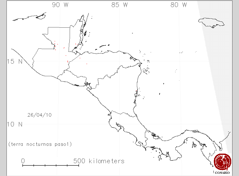 Se considera como punto de calor al elemento espacial mínimo de la imagen (pixel) que reporta una temperatura elevada. Para las imágenes diurnas la temperatura mínima considera es de 42C y para las imágenes nocturnas es de 25C. |