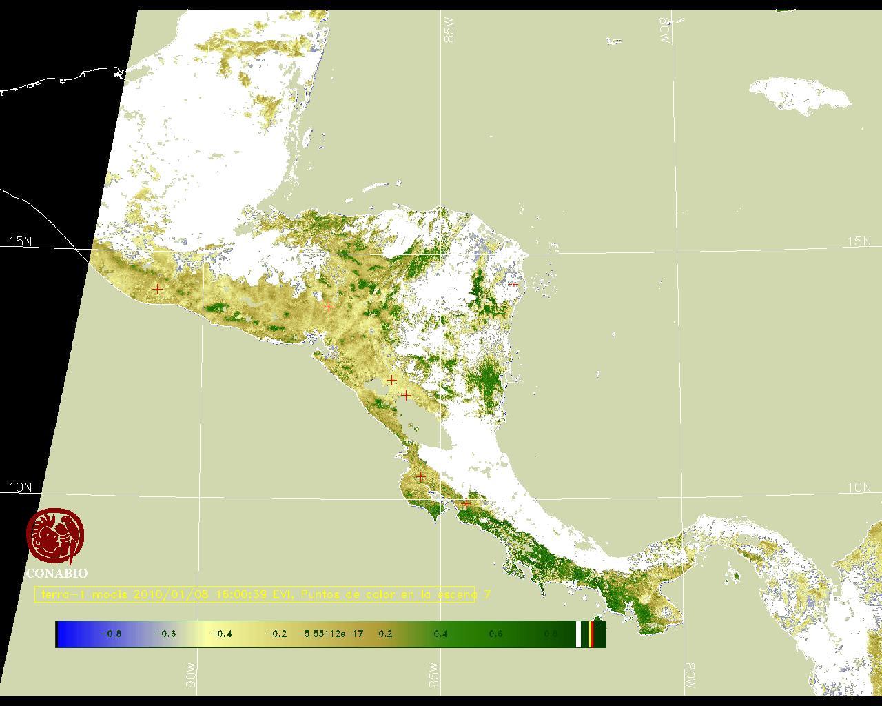 Los valores del índice van de -1 a 1, entre más cercano al valor 1 la vegetación presenta mayor vigor. Los índices de vegetación son utilizados para conocer el comportamiento de la vegetación tanto espacial como temporal. |
