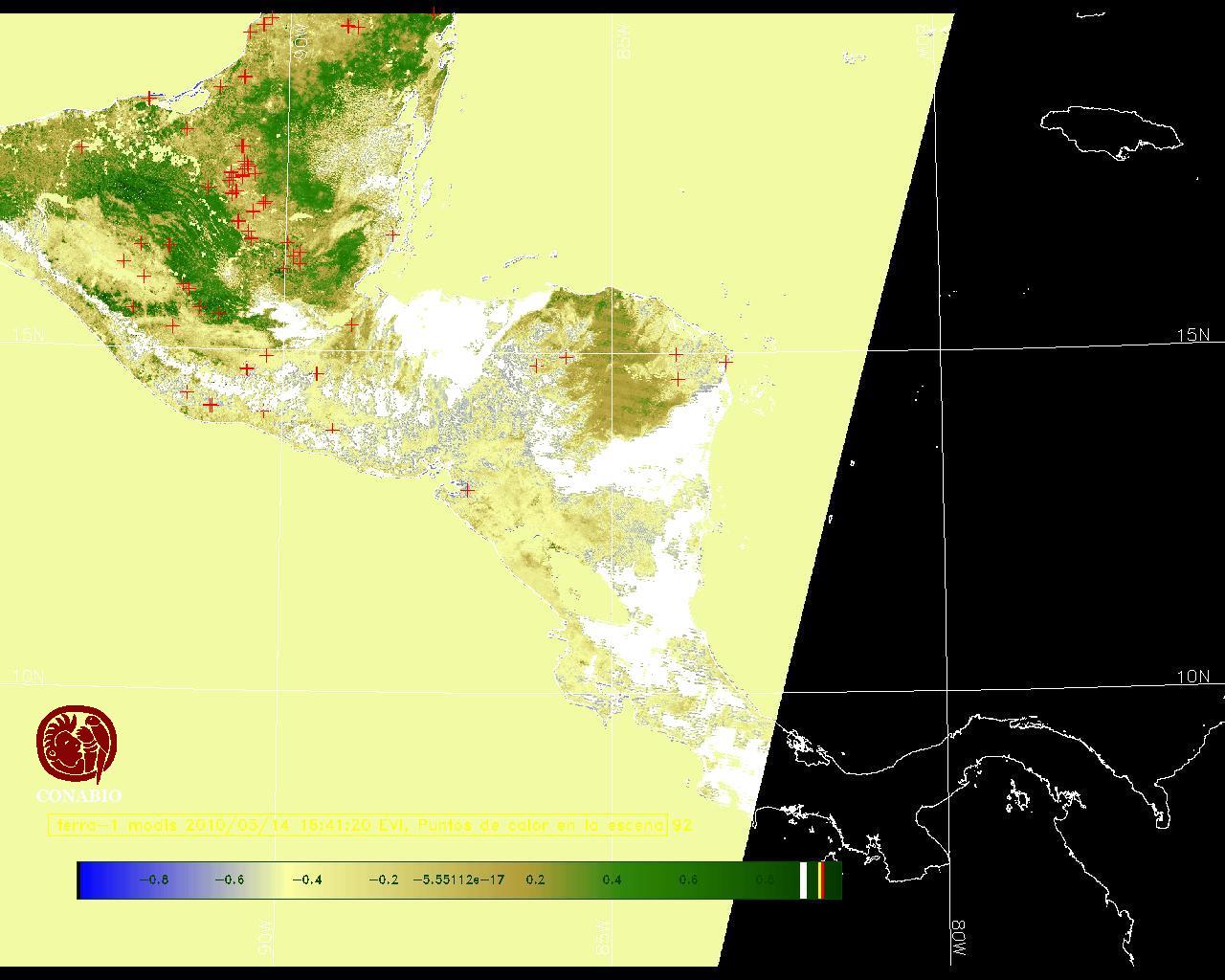 Se considera como punto de calor al elemento espacial mínimo de la imagen (pixel) que reporta una temperatura elevada. Para las imágenes diurnas la temperatura mínima considera es de 42C y para las imágenes nocturnas es de 25C. |