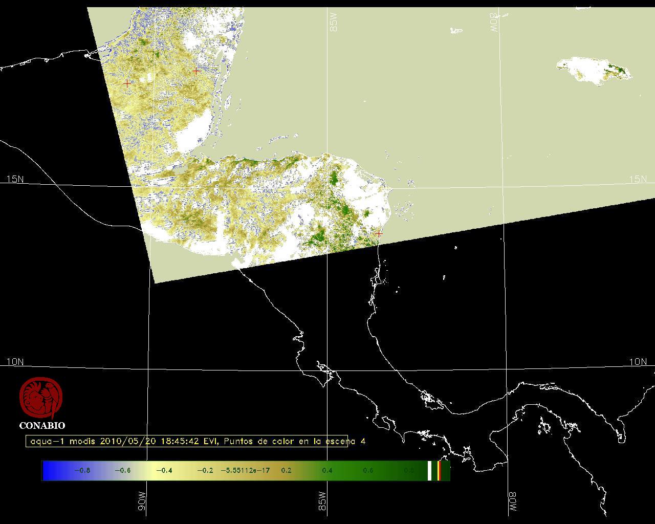 Se considera como punto de calor al elemento espacial mínimo de la imagen (pixel) que reporta una temperatura elevada. Para las imágenes diurnas la temperatura mínima considera es de 42C y para las imágenes nocturnas es de 25C. |