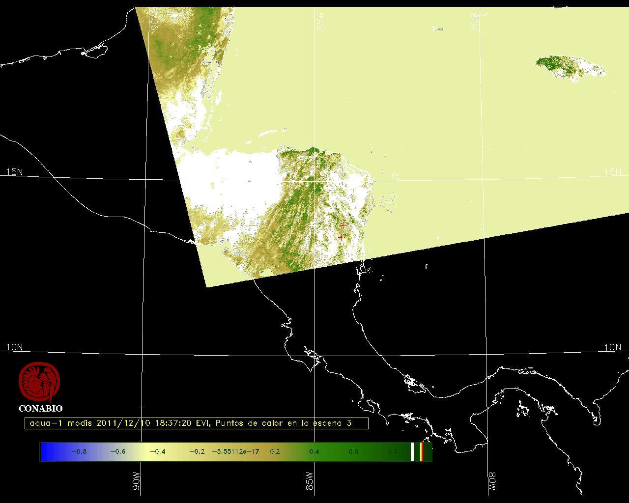 Se considera como punto de calor al elemento espacial mínimo de la imagen (pixel) que reporta una temperatura elevada. Para las imágenes diurnas la temperatura mínima considera es de 42C y para las imágenes nocturnas es de 25C. |