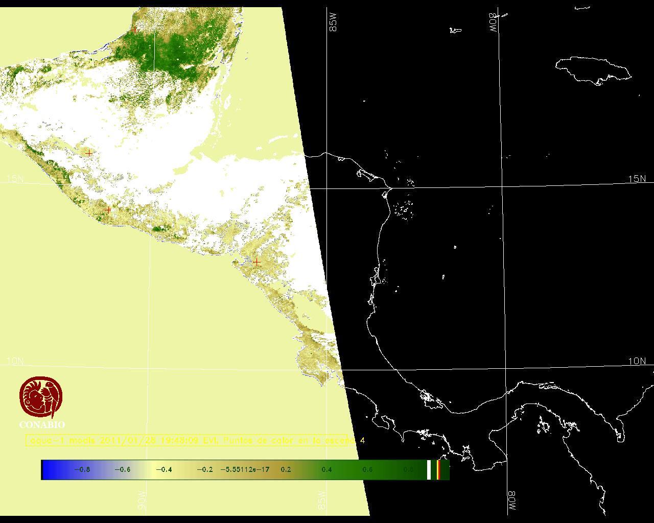 Se considera como punto de calor al elemento espacial mínimo de la imagen (pixel) que reporta una temperatura elevada. Para las imágenes diurnas la temperatura mínima considera es de 42C y para las imágenes nocturnas es de 25C. |