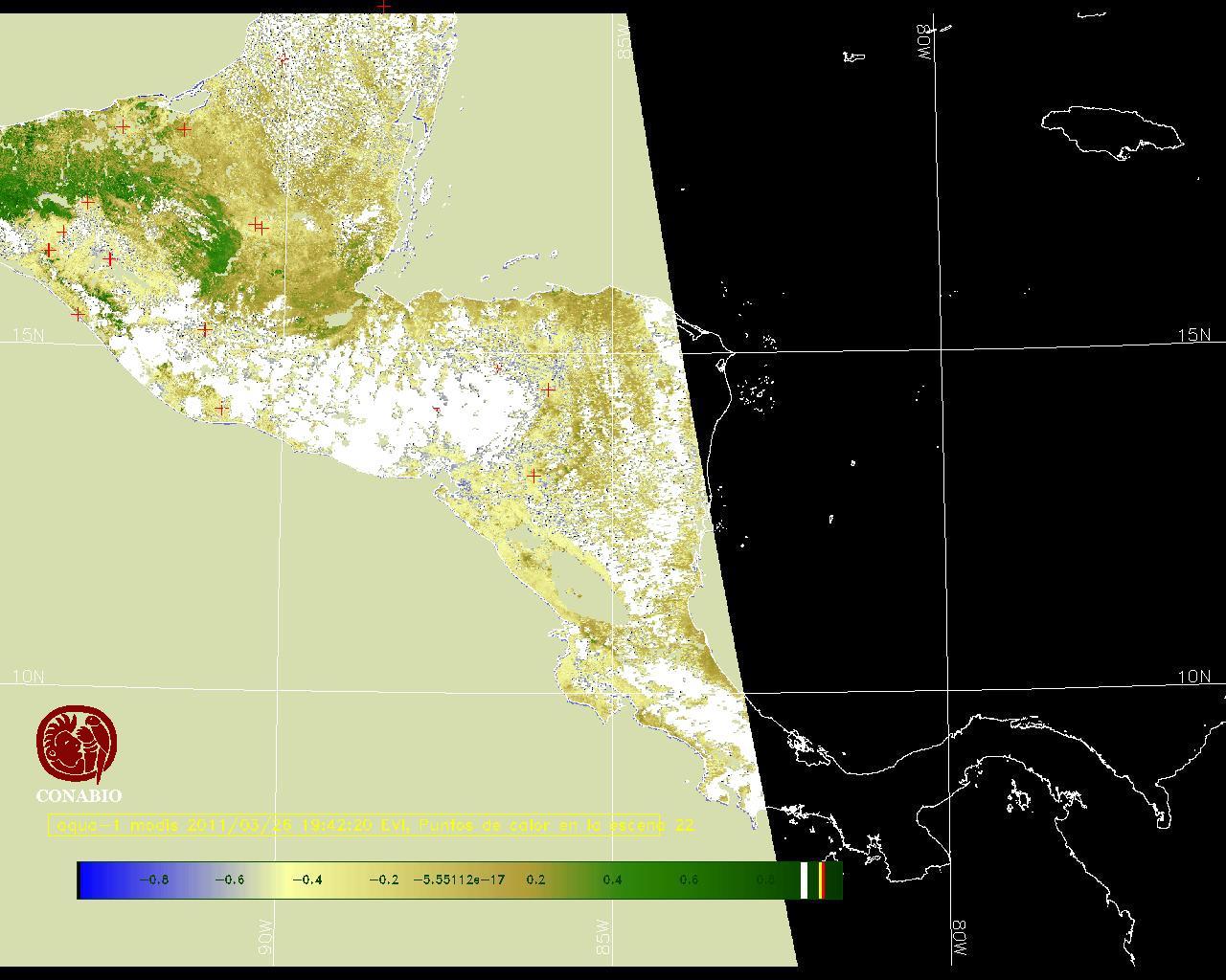 Los valores del índice van de -1 a 1, entre más cercano al valor 1 la vegetación presenta mayor vigor. Los índices de vegetación son utilizados para conocer el comportamiento de la vegetación tanto espacial como temporal. |