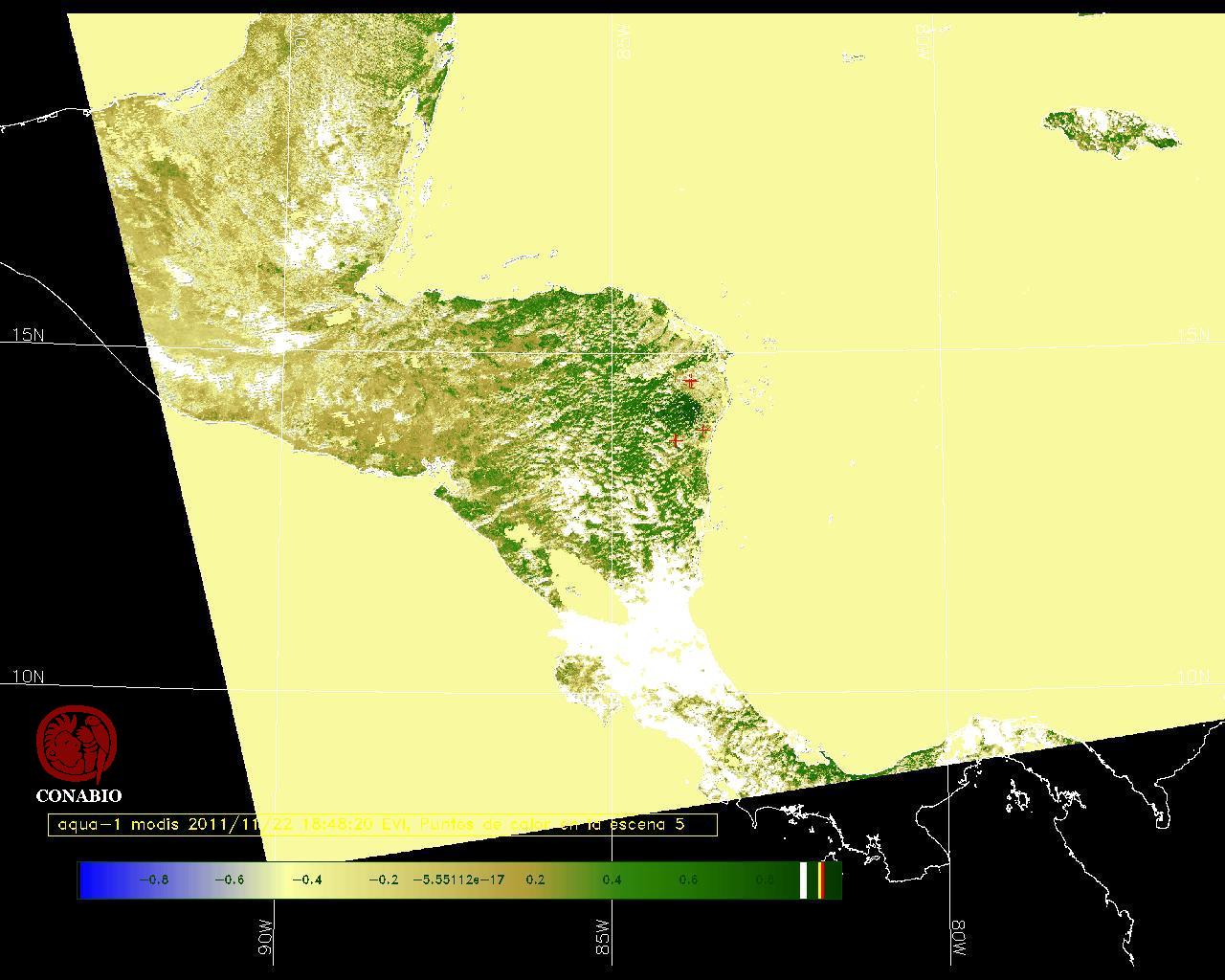 Se considera como punto de calor al elemento espacial mínimo de la imagen (pixel) que reporta una temperatura elevada. Para las imágenes diurnas la temperatura mínima considera es de 42C y para las imágenes nocturnas es de 25C. |