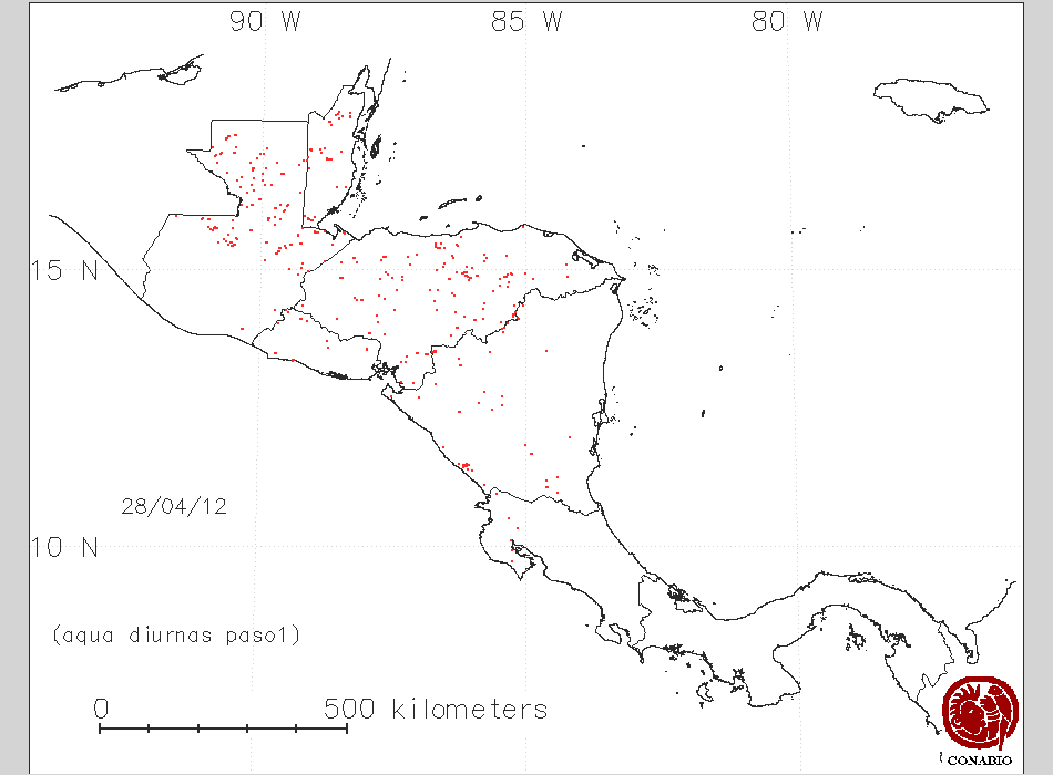 Se considera como punto de calor al elemento espacial mínimo de la imagen (pixel) que reporta una temperatura elevada. Para las imágenes diurnas la temperatura mínima considera es de 42C y para las imágenes nocturnas es de 25C. |