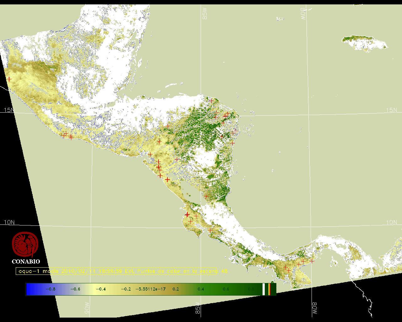 Se considera como punto de calor al elemento espacial mínimo de la imagen (pixel) que reporta una temperatura elevada. Para las imágenes diurnas la temperatura mínima considera es de 42C y para las imágenes nocturnas es de 25C. |