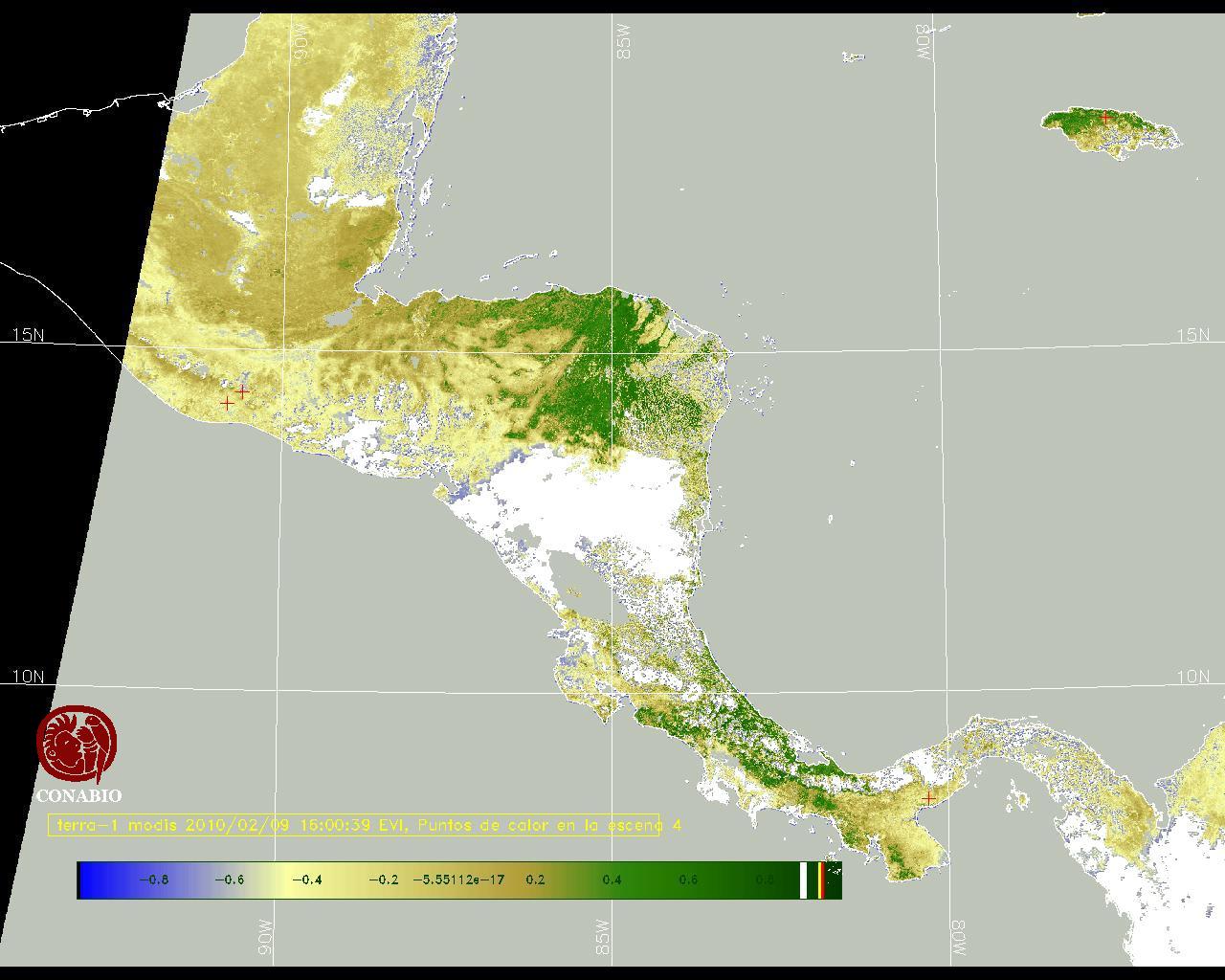 Se considera como punto de calor al elemento espacial mínimo de la imagen (pixel) que reporta una temperatura elevada. Para las imágenes diurnas la temperatura mínima considera es de 42C y para las imágenes nocturnas es de 25C. |