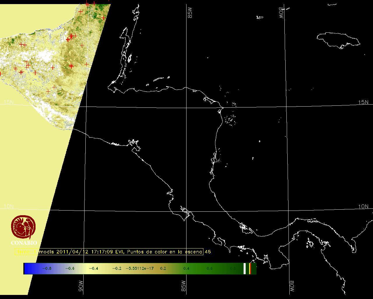 Se considera como punto de calor al elemento espacial mínimo de la imagen (pixel) que reporta una temperatura elevada. Para las imágenes diurnas la temperatura mínima considera es de 42C y para las imágenes nocturnas es de 25C. |