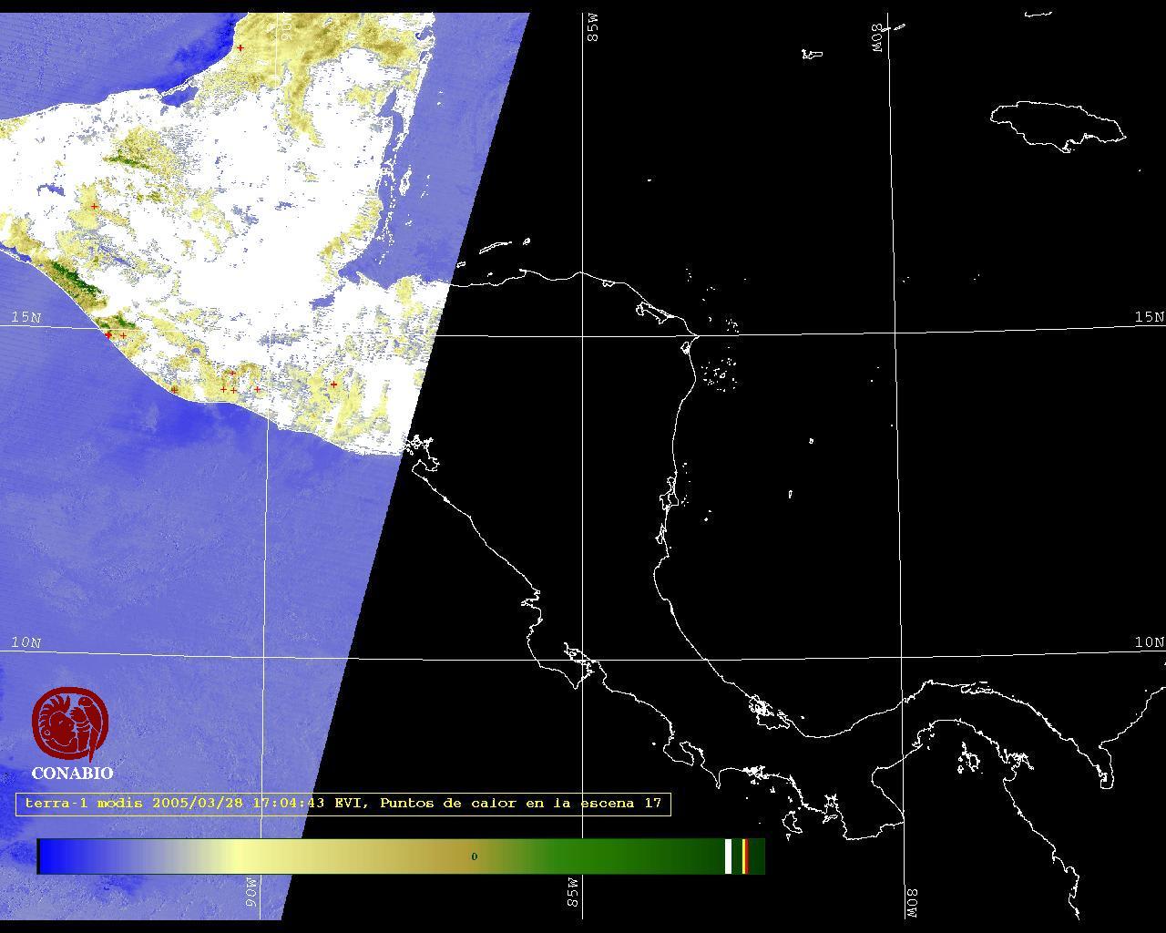 Se considera como punto de calor al elemento espacial mínimo de la imagen (pixel) que reporta una temperatura elevada. Para las imágenes diurnas la temperatura mínima considera es de 42°C y para las imágenes nocturnas es de 25°C. |