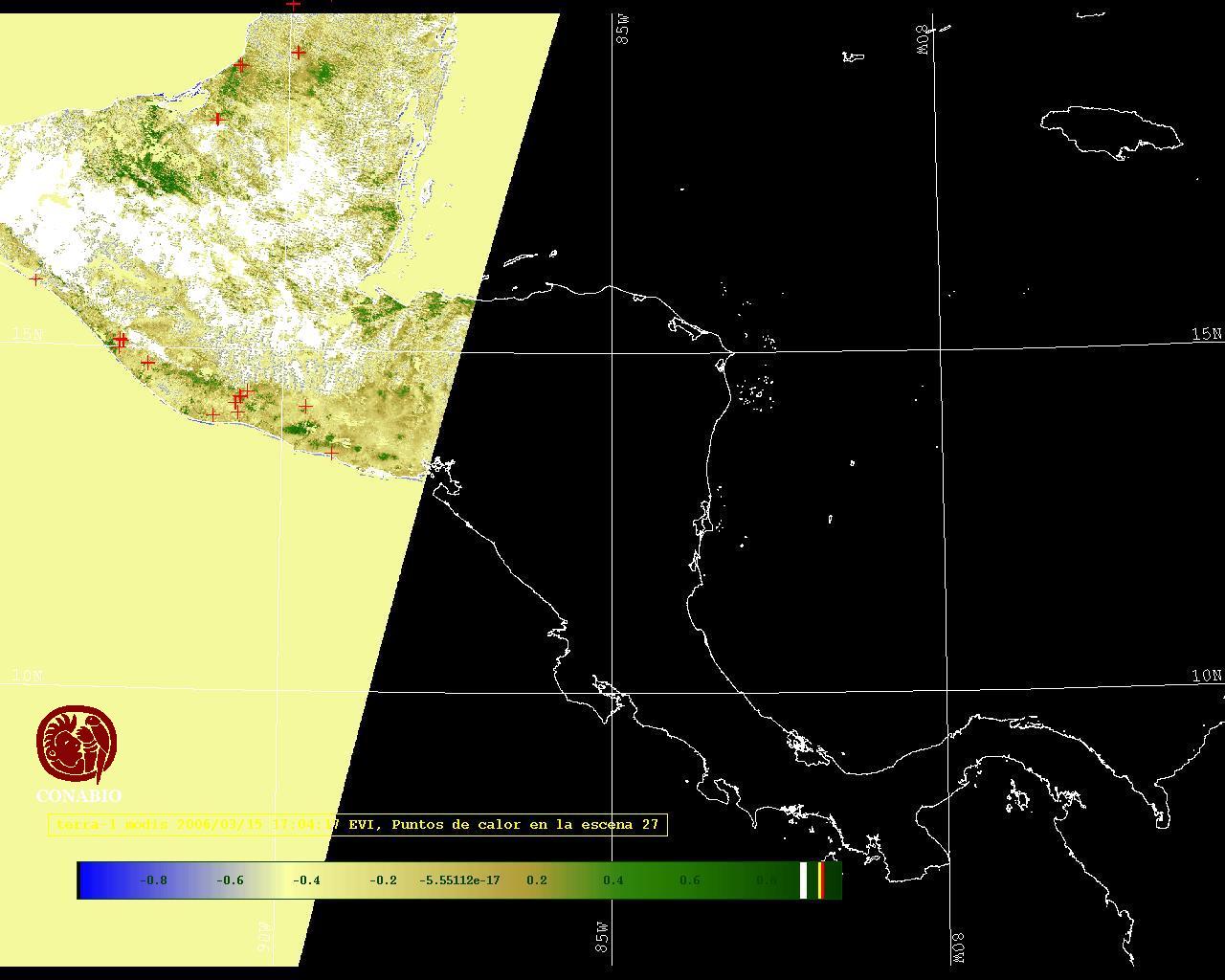 Se considera como punto de calor al elemento espacial mínimo de la imagen (pixel) que reporta una temperatura elevada. Para las imágenes diurnas la temperatura mínima considera es de 42C y para las imágenes nocturnas es de 25C. |